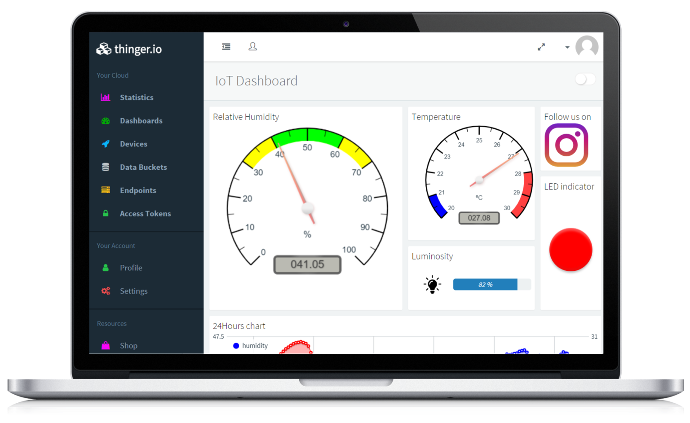 ThingsBoard允许您创建丰富的IoT仪表盘,以实时进行数据可视化和远程设备控制。 超过30种可自定义的小部件,使您可以在大多数IoT使用场景为终端用户构建自定义仪表盘。